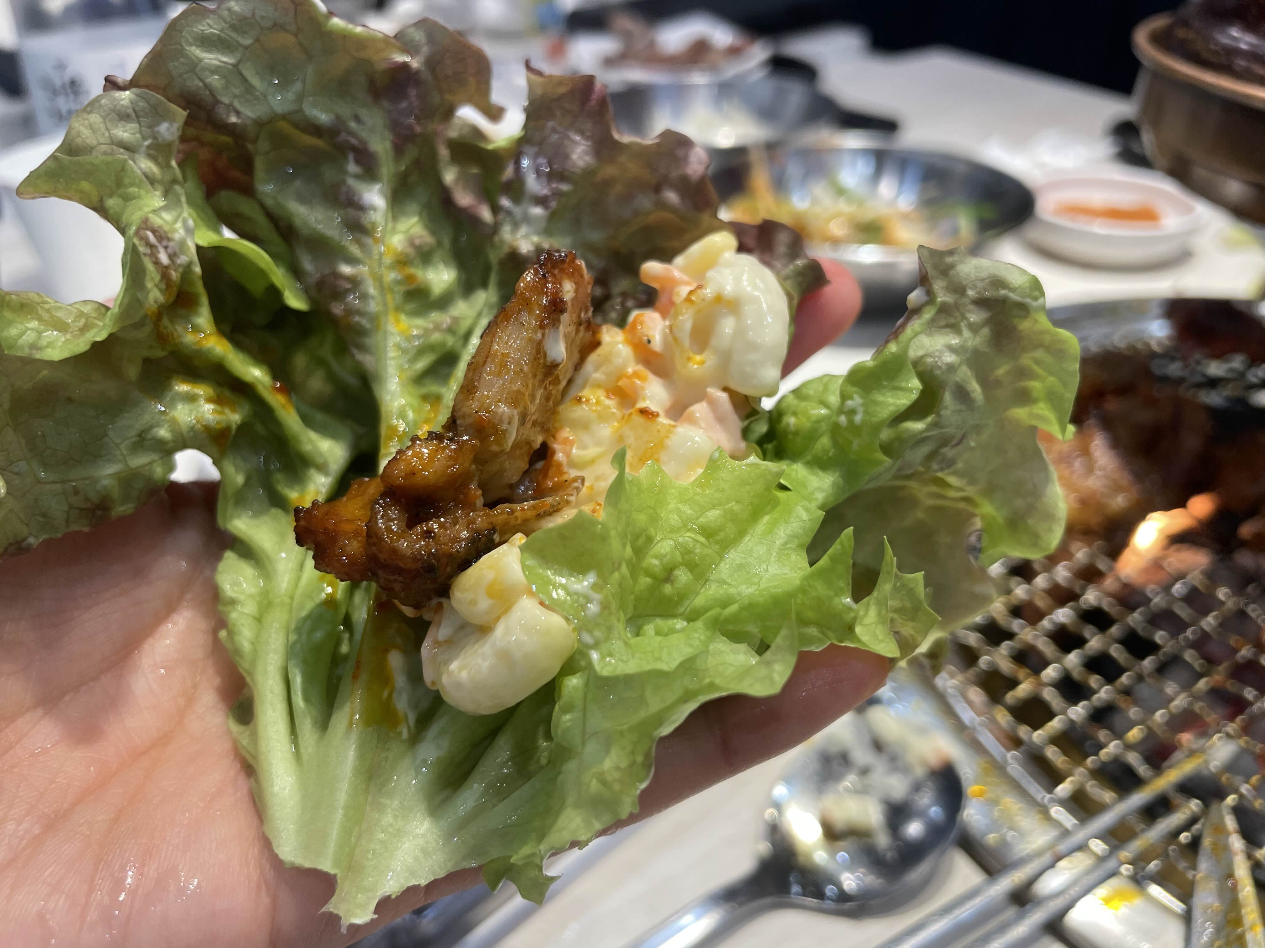 그리고 핵심은 닭갈비에 마카로니샐러드 잔뜩 싸먹는 것이다.