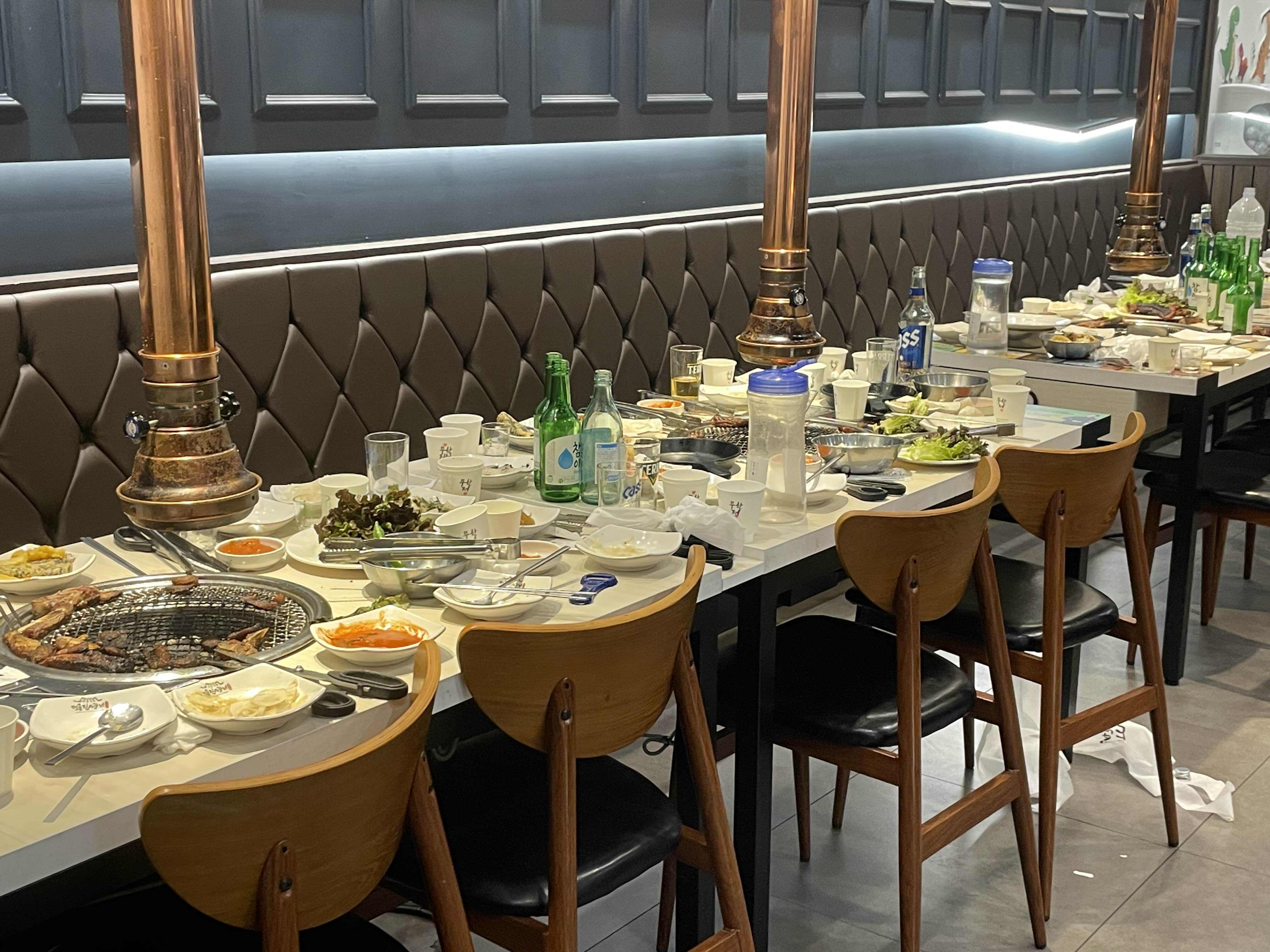 아무래도 회식으로 휩쓸고 간듯.... 한때 고기집 알바 해본 오뎅이는 고깃집 알바생들에게 박수를 보내고 픔