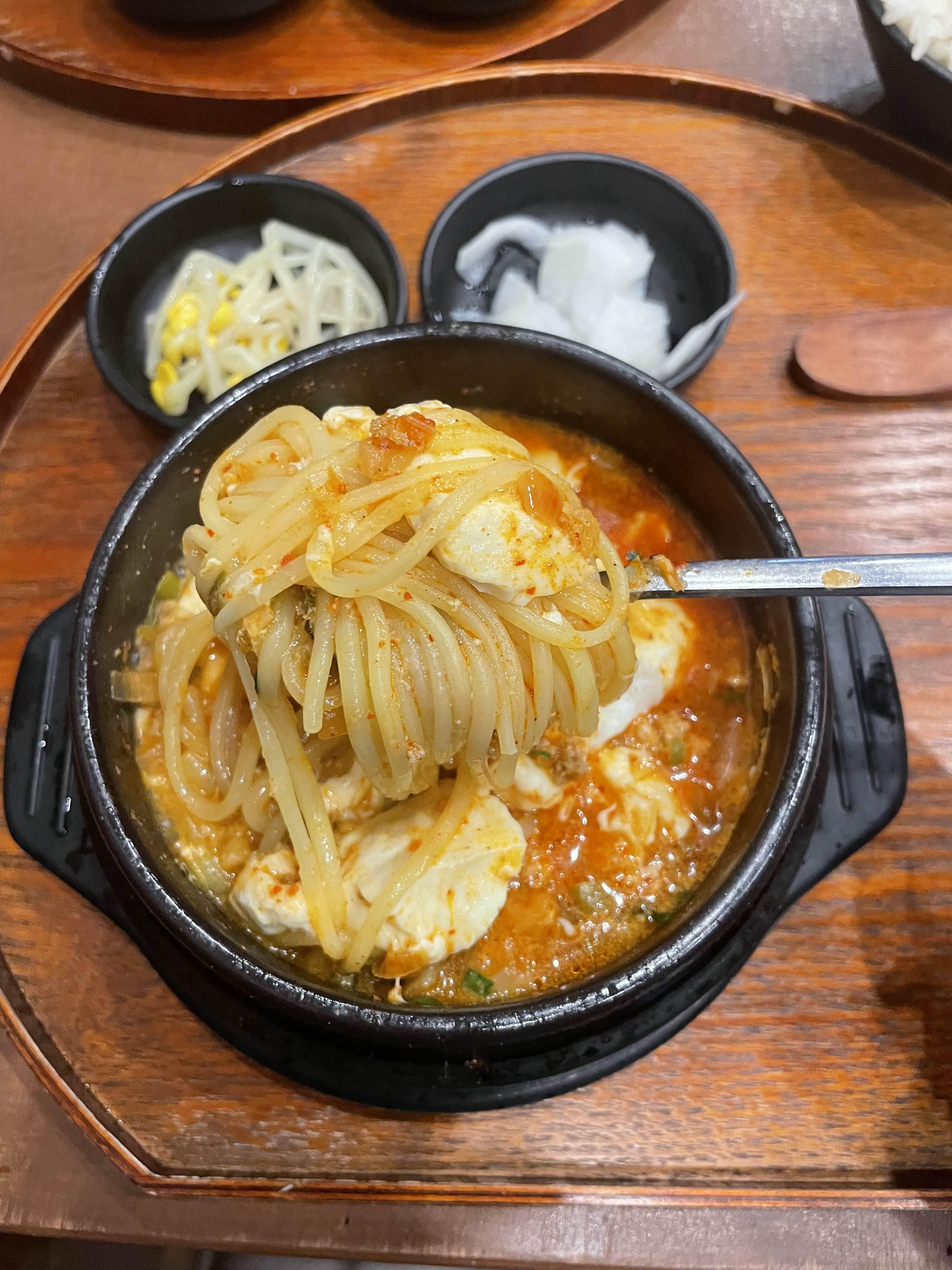 후추와 고추기름이 치고 들어오는 맛이 순두부와 너무 잘 어울린다. 거기 사이로 비집고 들어오는 쫄면도 아주 좋다.