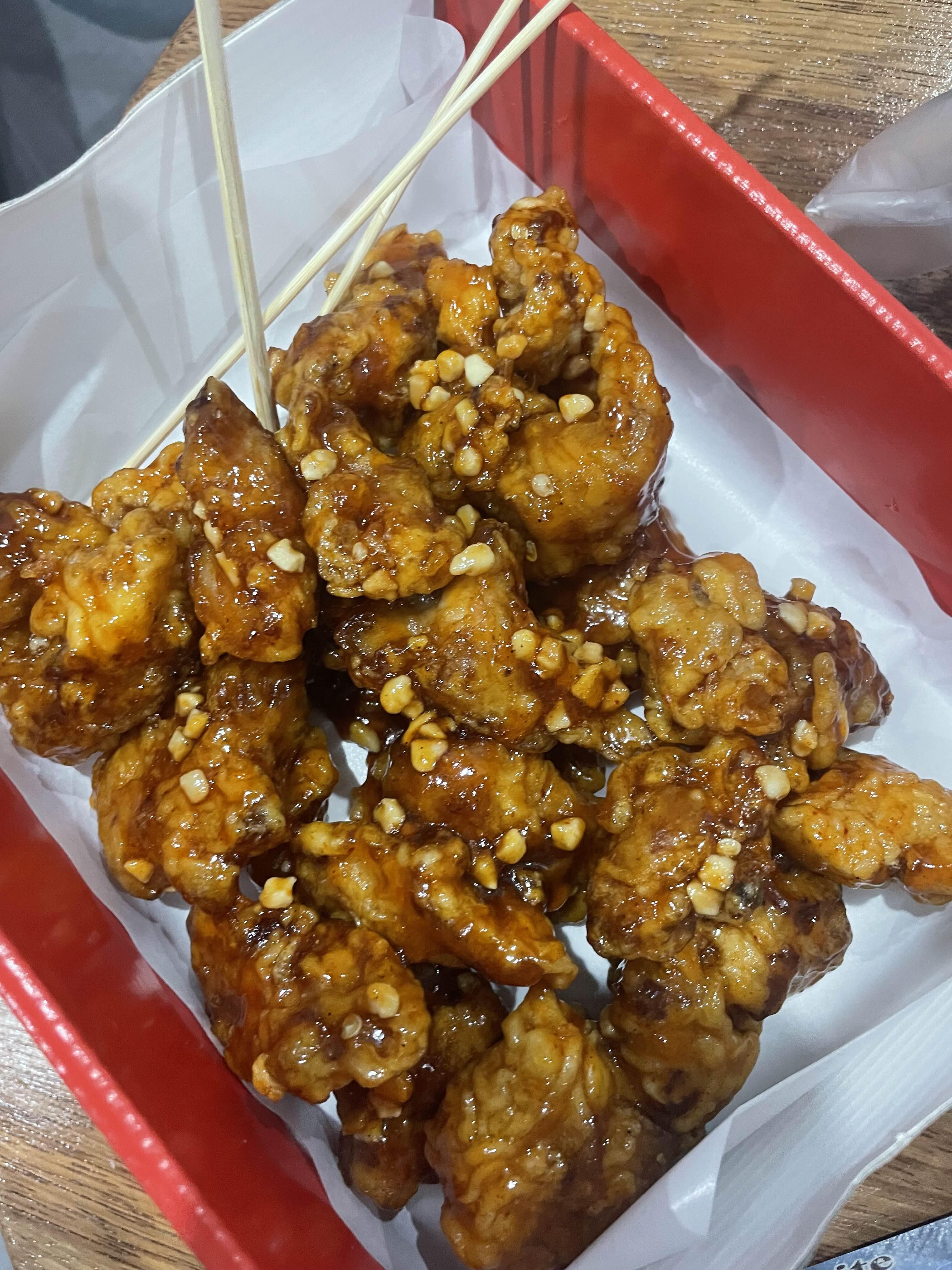 유일하게 문이 열렸던 닭강정집과, 마지막으로 남았던 미니사이즈의 닭강정 (10,000원)